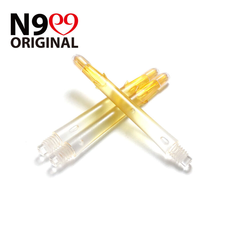 CAÑAS L-SHAFT Transparente Orange tamaño 260 Juego de 3 cañas de nylon enriquecido Fabricadas en Japón Sistema de guía único para cargar la pluma. Incorpora champagne rings de sujeción para plumas Modelado de rosca perfecto Medida: 39mm sin contar rosca Las cañas N9 Original es una caña con un diseño perfecto y capaz de satisfacer al jugador mas exigente, se recomienda jugar siempre con plumas tambien de L-Style para que la sensación al jugar a dardos sea excepcional y muy precisa.