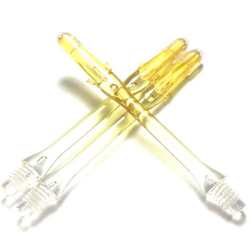 CAÑAS L-SHAFT Transparente Lemon tamaño 330 Juego de 3 cañas de nylon enriquecido Fabricadas en Japón Sistema de guía único para cargar la pluma. Incorpora champagne rings de sujeción para plumas Modelado de rosca perfecto Medida: 50mm sin contar rosca Las cañas N9 Original es una caña con un diseño perfecto y capaz de satisfacer al jugador mas exigente, se recomienda jugar siempre con plumas tambien de L-Style para que la sensación al jugar a dardos sea excepcional y muy precisa.