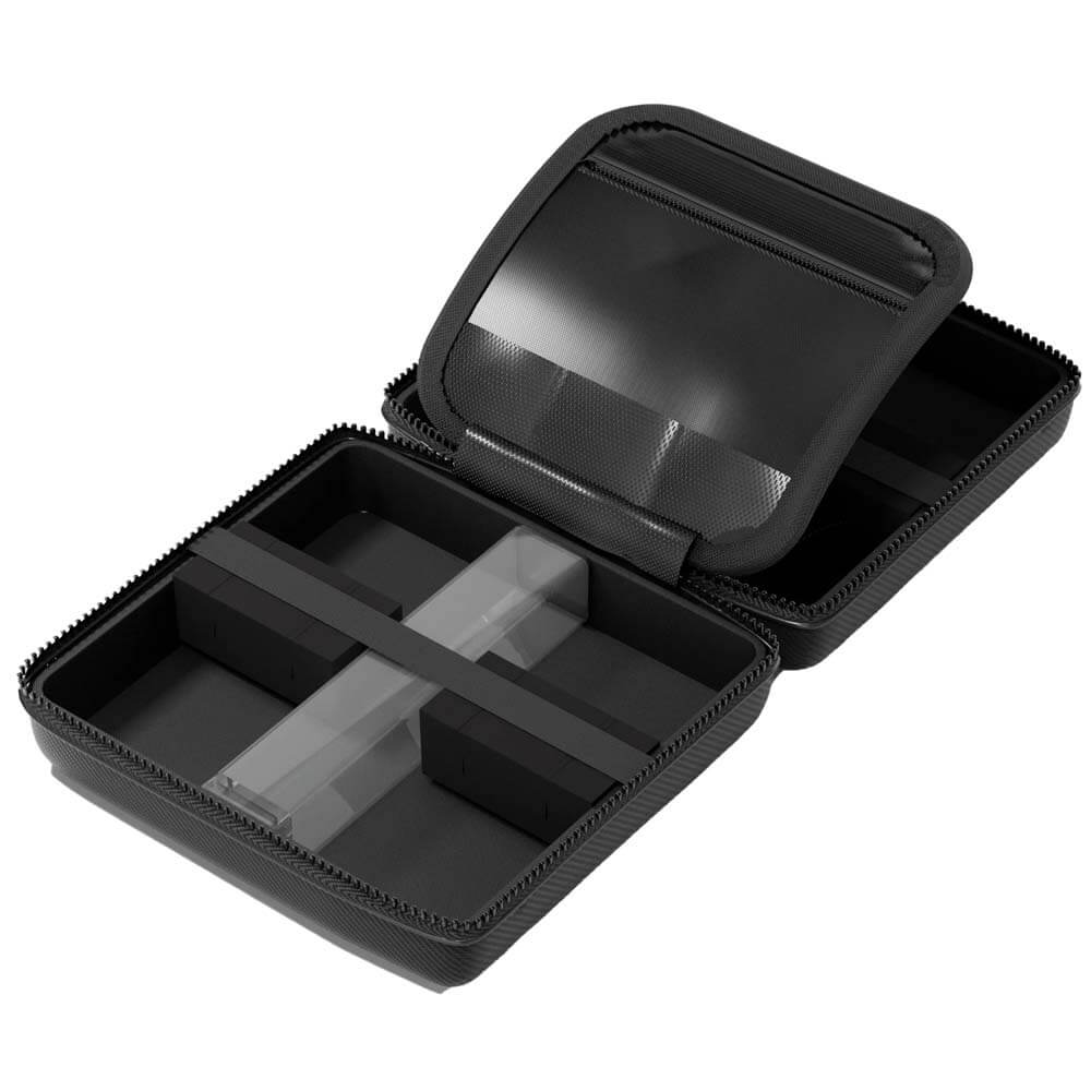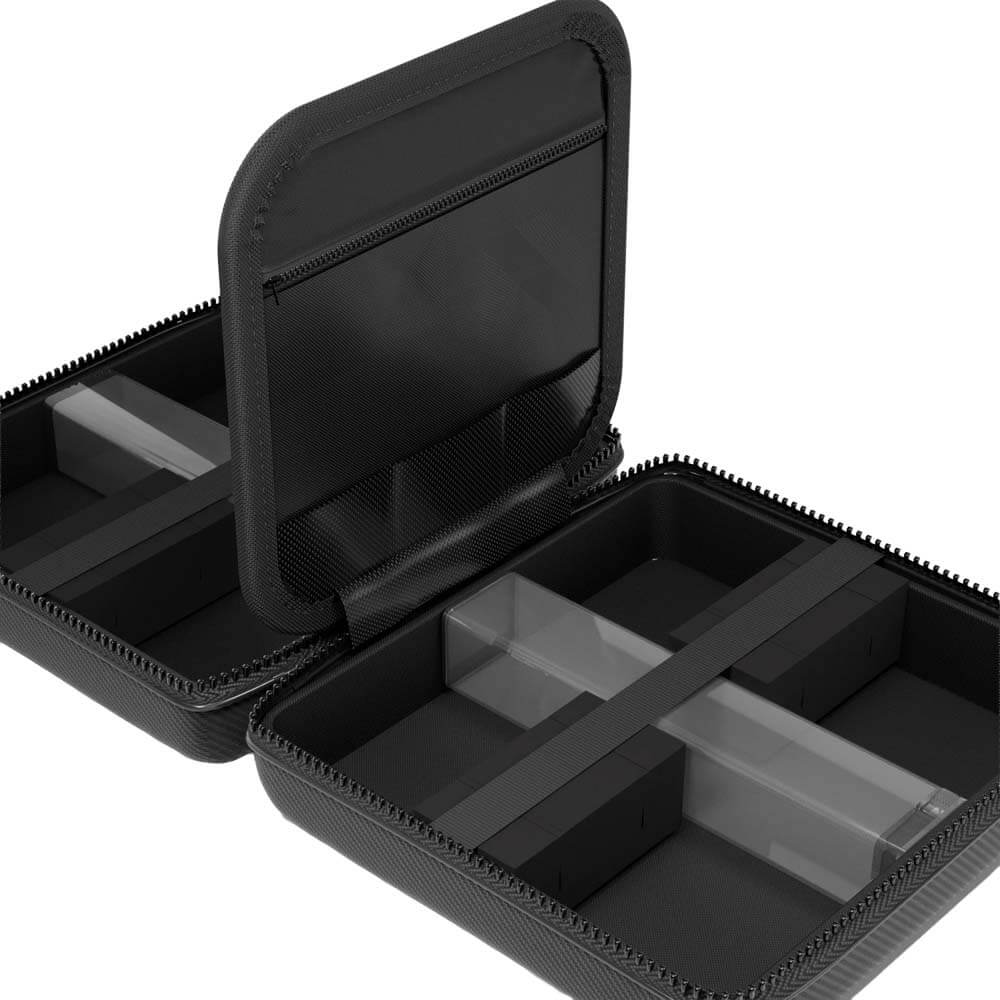 El estuche para dardos Casemaster Ventura Pro es perfecto para una noche de dardos. Tiene capacidad para cuatro juegos completos de dardos, un total de 12, sin dañar las plumas. Incluye dos tubos cuadrados diseñados para guardar plumas moldeadas, así como combinaciones de plumas y cañas que necesitan espacio adicional sin aplastarse. Su carcasa rígida mantiene su forma para resistir impactos y es resistente a la humedad. Su bolsillo con cremallera y sus seis ranuras para plumas te permiten guardar tus accesorios de dardos y objetos personales con facilidad. El resistente acabado en fibra de carbono le da al estuche Ventura Pro un aspecto único, con un discreto logotipo que realza su diseño llamativo. Dardos y accesorios se venden por separado. Capacidad para 12 dardos: Transporta un juego completo de dardos de punta blanda o de punta de acero, un total de 12, de hasta 16,5 cm de largo. Dos tubos de almacenamiento grandes: Los tubos de almacenamiento incluidos le permiten guardar plumas moldeadas, combinaciones de eje y pluma, o cualquier otro accesorio que necesite. Resiste los elementos: Mantiene tus dardos a salvo repeliendo la humedad y protegiéndolos de caídas e impactos. Construcción superior: Este estuche para dardos cuenta con un exterior de fibra de carbono, una cremallera resistente, compartimentos de espuma que se ajustan a la forma, un asa duradera y una banda elástica para mantener todo seguro. Bolsillos seguros: Guarda fácilmente tus accesorios de dardos con seis ranuras para plumas y dos bolsillos con cremallera. Dardos y accesorios no incluidos. Marca: Casemaster Modelo: Ventura Pro Medida: 20cm x 20cm x 10cm Color: Negro El productos se compone por una funda completa para llevar los dardos Ventura Pro Casemaster, no incluye dardos ni repuestos solo es la funda