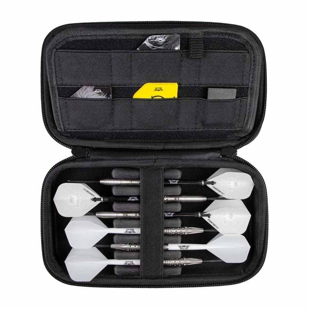 Funda de dardos fabricada por la marca de dardos Bulls Holanda bajo el modelo Bulls Morph Case en color negro, funda con capacidad para dos juegos de dardos montados y accesorios Marca: Bulls Modelo: Morph Case Medida: 19.5 x 11.5 x 4.5 cm Color: Azul El producto se compone por una funda para juego de dardos Morph Case , no incluye dardos ni accesorios solo es la funda.
