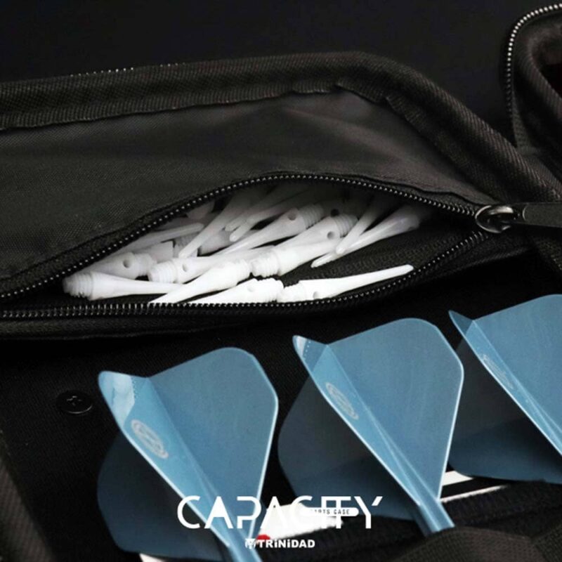 Funda para dardos fabrica por Trinidad, funda de gran capacidad y diseño muy actual, funda con una relacion calidad precio excelente. Marca: Trinidad Modelo: Capacity Color: Naranja Diseño: Thunder Bite, Miyu Miyawaki Dimensiones (cerrado): 19,5 cm x 14,0 cm x 5,5 cm Dimensiones (desplegado): 19,5 cm x 29,0 cm x 3,0 cm Capacidad para 2 juegos de dardos montados, 1 set de 3 plumas Condor, 1 bolsillo para tarjetas y 1 bolsillo con cremallera. El producto se compone por una funda Trinidad Capacity, no incluye dardos ni repuestos, es solo la funda.