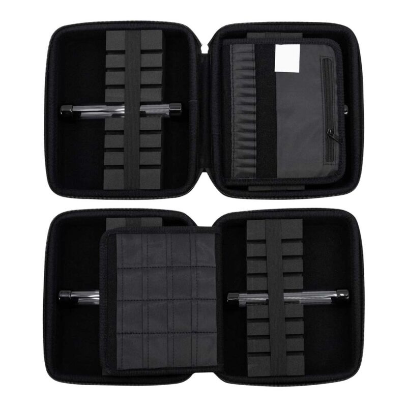 El práctico estuche para dardos está fabricado de un material protector EVA. La alta rigidez de la bolsa protege de forma fiable cuatro juegos de dardos completamente montados y protegidos contra daños e influencias externas. Dos compartimentos con cremallera proporcionan espacio de almacenamiento adicional para accesorios como plumas, varillas o puntas. Marca: GOAT Modelo: Locker Talla: XXL Medida: 22cm x 18cm x 8cm Color: Rojo Material: EVA con interior acolchado y cremallera Capacidad: 4 juegos de 3 dardos montados, bolsillos para accesorios y 2 botes para puntas El producto se compone por una funda para dardos de la marca GOAT, no incluye dardos ni repuestos, es solo la funda.