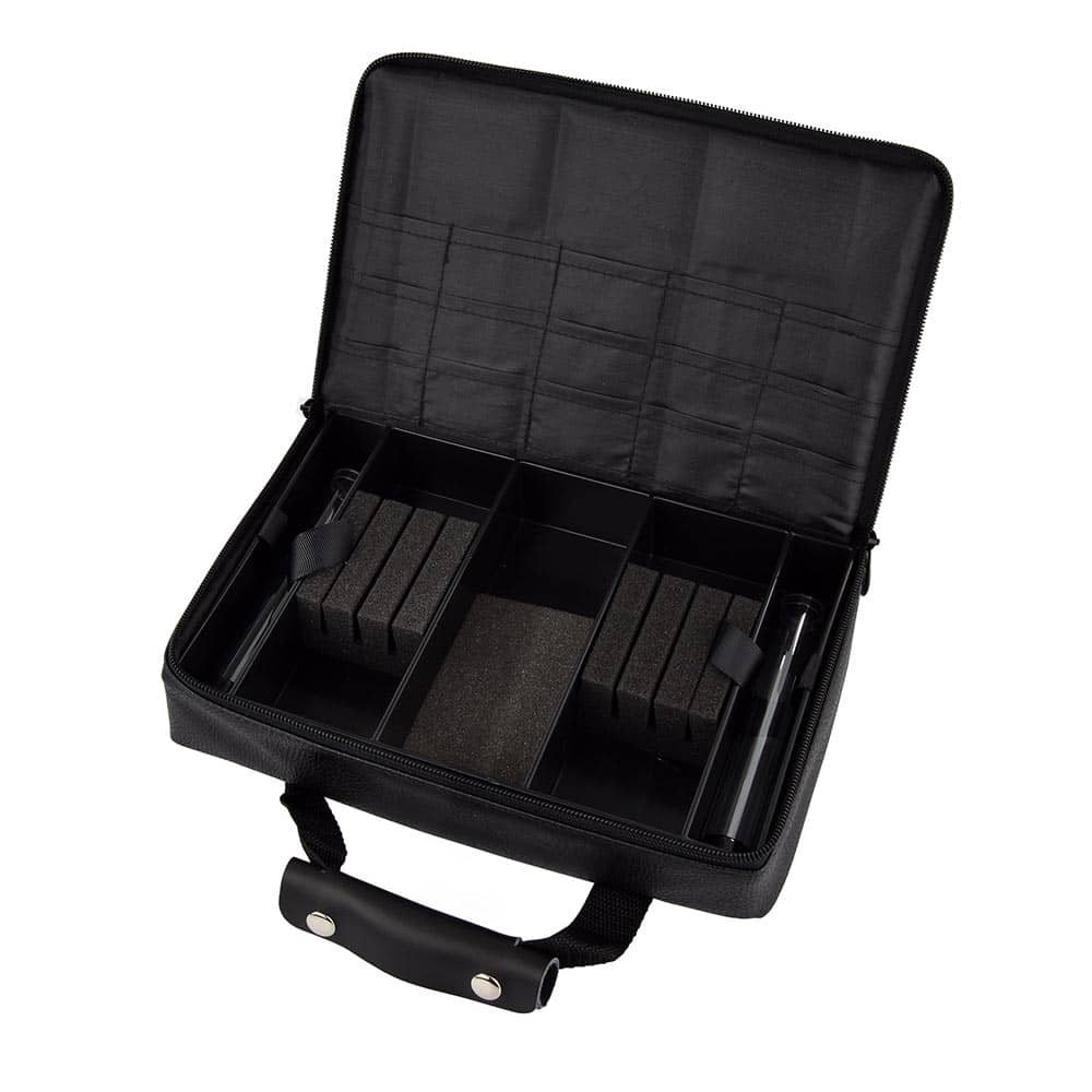 Master PAK: durante décadas, la bolsa de dardos de lujo más popular para los jugadores exigentes de dardos con punta de plástico y de acero. Bolsa negra extremadamente estable con una carcasa de plástico cubierta con cuero sintético resistente, fácil de limpiar, de alta calidad y robusto. Bolsa grande de diseño práctico con compartimentos de espuma para hasta 3 juegos de dardos montados y muchos compartimentos para accesorios adicionales. En el exterior de la bolsa profesional hay una resistente correa de nailon con asa de transporte. El asa de transporte está hecha de cuero PU, es extremadamente cómoda de sostener y es absolutamente robusta. El logotipo de Karella en las dos cremalleras y la pegatina Master PAK garantizan que conservarás el legendario original. Incluye 2 tubos para puntas de dardos. Medida de la funda de dardos 26x18x6cm No incluye dardos ni accesorios, es solo la funda.