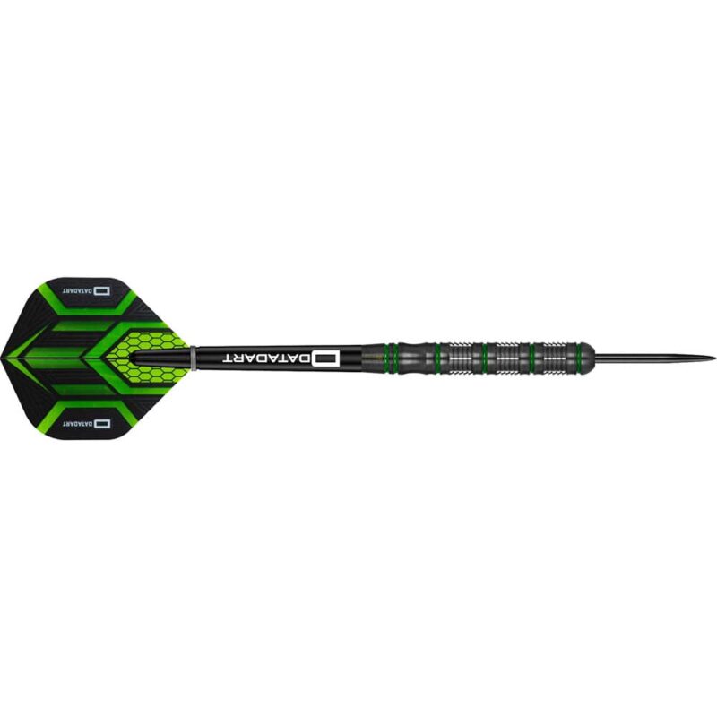 Juego de dardos de la prestigiosa marca inglesa Datadart, Dardos con impresionante acabado y un agarre con diferentes tipos de anillada tanto agripado como simple, dardos con acabado de nitrito de titanio negro con detalles en color verde. Marca: Datadart Modelo: Marauder Peso: 23g Medidas: Largo 50mm Ancho 6.5mm Tungsteno: 90% Este juego de dardos se compone por 1 set de 3 dardos, 1 set 3 cañas y 1 set 3 plumas Dardos Datadart Modelo Element 90% 23gMarca: DatadartModelo: MarauderPeso: 23g Medidas: Largo 50mm Ancho 6.5mmTungsteno: 90%Este juego de dardos se compone por 1 set de 3 dardos, 1 set 3 cañas y 1 set 3 plumas