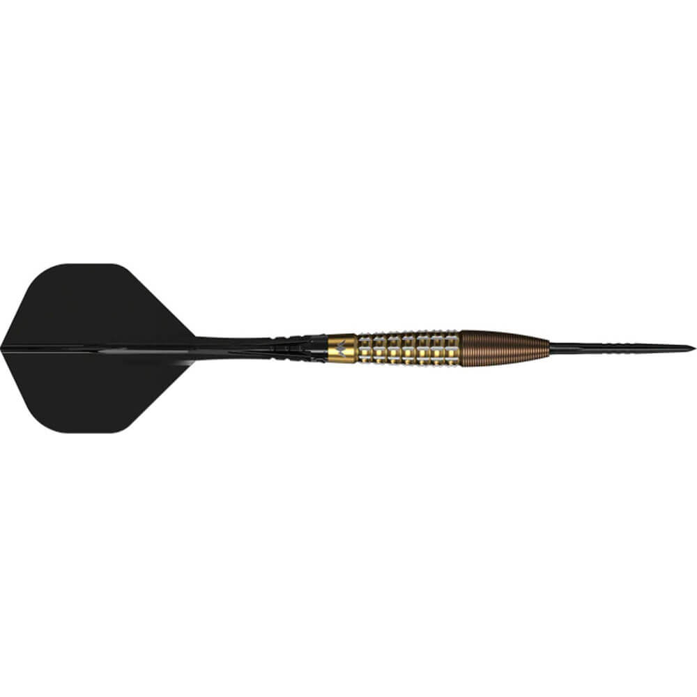 Estos dardos están fabricados con un material premium de tungsteno al 95 % y cuentan con un revestimiento PVD de bronce y oro en los barriles. Este dardo incluye un patrón de agarre único en el centro del barril, creado mediante un mecanizado intrincado y pequeñas ranuras con un hermoso revestimiento PVD dorado. Hay una pequeña sección lisa en la parte trasera del barril con el logotipo de Mission grabado con láser, con una punta larga y cónica en la parte delantera con nano agarre y un revestimiento PVD de bronce que conduce a una punta Caliburn EVO negra y lisa. El dardo Rhodon viene completo con un juego de plumas Mission Force 90 Vortex transparentes negras todo en uno. El dardo Mission Rhodon viene en una caja de presentación que también incluye dos juegos de plumas Mission Force 90 Vortex de repuesto, puntas Caliburn EVO de repuesto, una herramienta para puntas Caliburn EVO y una insignia Mission. Marca: Mission Modelo: Rhodon Material: 95% Tungsteno Largo Barril: 46 mm Diámetro Barril: 7.3 mm Peso barril: 23 gr Peso total: 24.5 gr Tipo de punta: Metal – Steel Tip Rosca de caña: 2ba 4mm El juego de dardos se compone por 1 set de 3 cuerpos de dardos Mission Rhodon con puntas de acero Mission Caliburn, 1 set de 3 cañas y 1 set de 3 plumas Vortex.