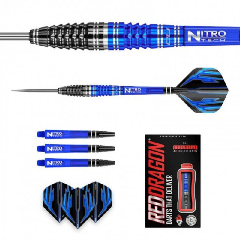 Juego de dardos de calidad profesional fabricado por la firma Inglesa Red Dragon modelo Delta Dardos con un acabado en color azul y negro que lo hace único y le da una elegancia que en pocos dardos podrás encontrar, dardos con un agarre tipo shark invertido que aportara al jugador una sensación de lanzamiento de gran precisión. Marca: Red Dragon Modalidad: Punta Metal Rosca caña: 2BA Modelo: Delta % Tungsteno: 90% Diámetro cuerpo: 7.9mm Longitud cuerpo: 45.7mm Peso cuerpo 24g con una precision de +-0.1g El juego de dardos e compone por 1 set de 3 cuerpos Delta 2 Red Dragon, 1 set de 3 cañas y 1 set de 3 plumas Red Dragon.