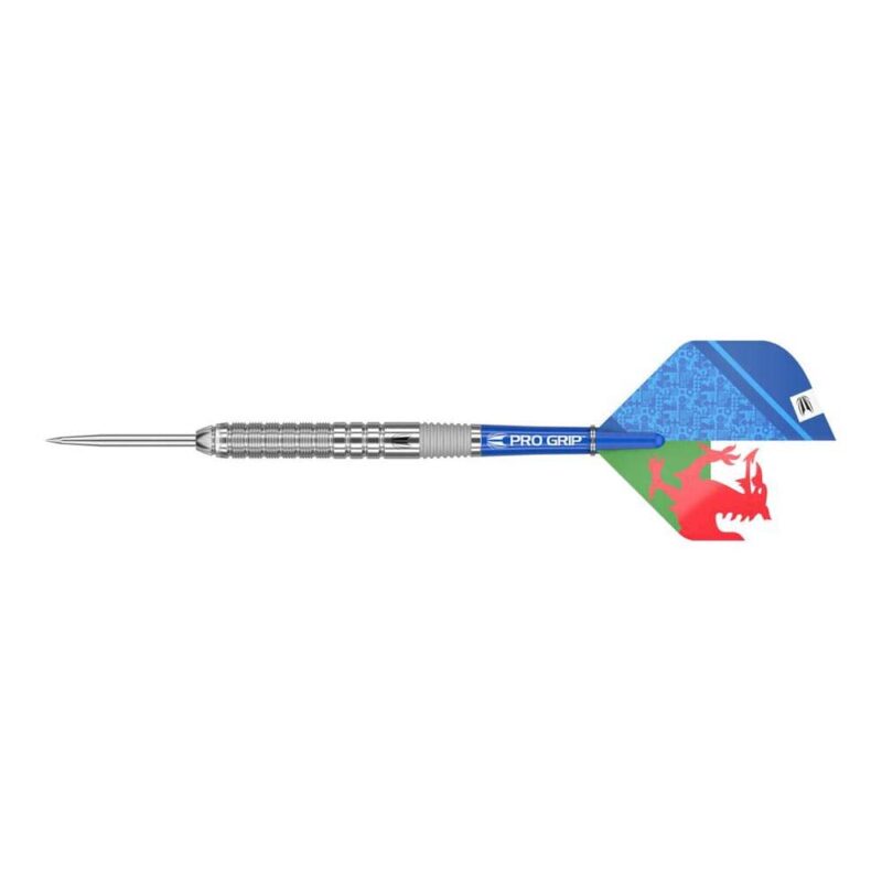 El Lewy Williams Gen 1, diseñado y utilizado por El Príncipe de Gales. El diseño del barril de tungsteno al 90% cuenta con múltiples secciones de agarre y una combinación de revestimientos. El cilindro recto combina múltiples empuñaduras que incluyen dos profundidades diferentes de ranuras radiales, así como nano en la parte delantera y central. Luego, el barril se complementa con un pulido a mano en la parte trasera para crear más agarre y sensación y un equilibrio óptimo para todos los niveles de jugadores. El dardo está terminado con una caña Pro Grip azul, pluma de Lewy Williams y una punta Pixel Tip negra. Marca: Target Modelo: Lewy Williams Gen 1 Longitud: 50.8mm Diámetro: 6.6mm Peso del barril: 23 Gr Peso total: 24.5 Gr aprox Material: 90% Tungsteno Tipo de punta: Metal – Steel Tip El juego se compone por 1 set de 3 cuerpos de dardos Lewy Williams Gen 1 23gr, 1 set de 3 cañas Pro Grip Short Azul, 1 set de 3 plumas Lewy Williams No2 y 3 puntas Standard Silver Points 26mm.