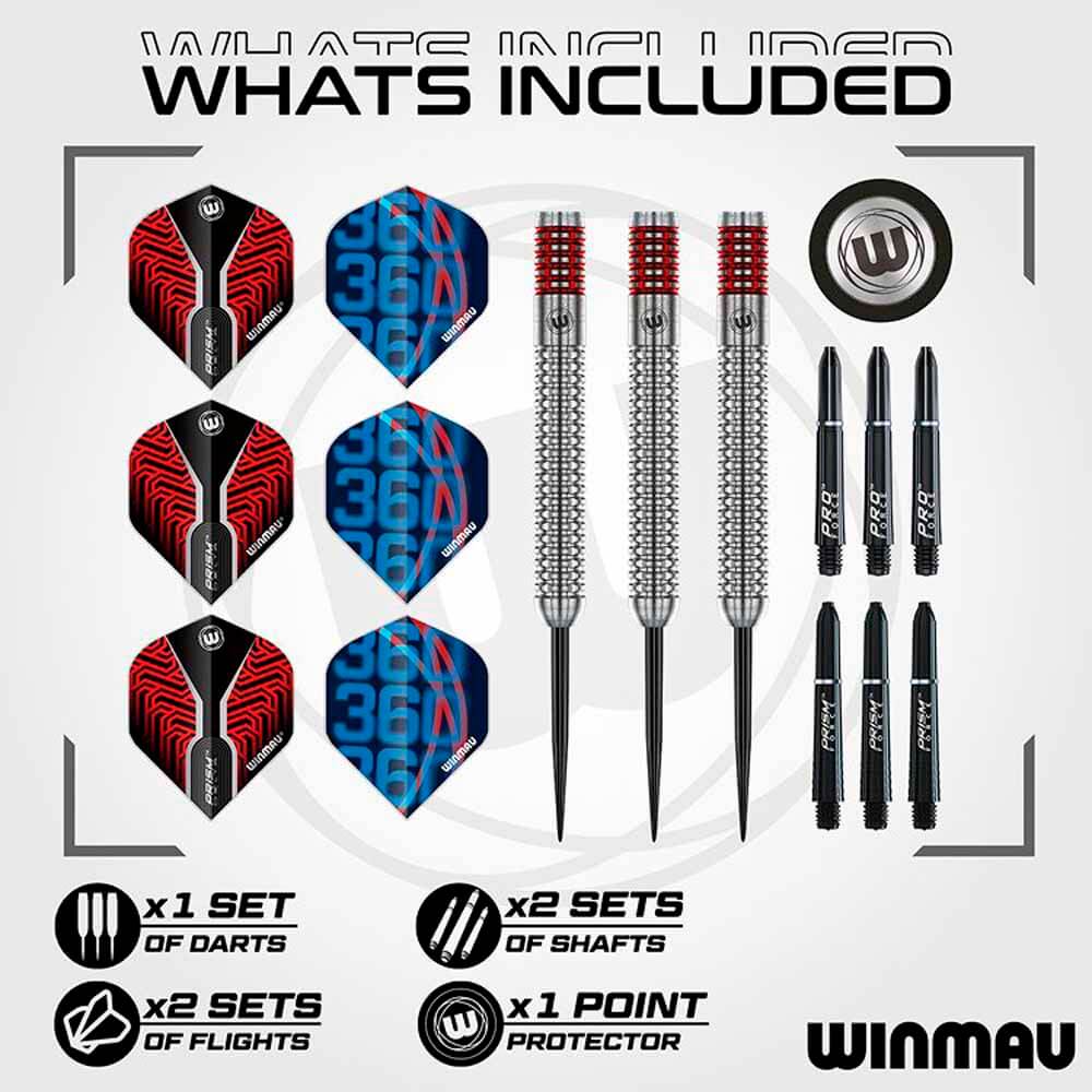 Dardos fabricados por Winmau bajo el modelo Team 360 ahora para el jugador Winmau Lewis Cook 90% Estos dardos están fabricados con un 90% de tungsteno, lo que garantiza una alta densidad y durabilidad. Con un peso de 23 gramos El barril tiene una forma recta y mide 50,8 milímetros de largo con un diámetro de 6,55 milímetros. Esto hace que los dardos sean perfectos para lanzar cómodamente sin que se sientan ni demasiado gruesos ni demasiado delgados. Comodidad y agarre durante el juego El barril cuenta con un grip excelente, gracias a su pequeñas ranuras fresadas en el metal aportara al juego un muy buen agarre. La zona de agarre está distribuida a lo largo de todo el cuerpo del dardo, permitiéndote decidir dónde sujetar el dardo. La punta del cuerpo del dardos es redonda y lisa, lo que facilita una suelta suave del dardo. El equilibrio es este dardos esta en el centro ponderado, lo que distribuye el peso de forma óptima para un lanzamiento estable y preciso . La valoración de agarre es de 3 sobre 5, indicando que estos dardos ofrecen un agarre medio, perfecto para jugadores que no prefieren un grip demasiado agresivo. Pack completo para cualquier jugador de dardos Los dardos Winmau Team 360 Lewis Cook vienen con dos juegos de shafts y dos juegos de flights en un atractivo diseño en rojo y plata, a juego con el barrel. También incluyen un protector de punta para que los dardos se mantengan en buen estado por más tiempo y sufran menos daños. Estos dardos han sido diseñados en colaboración con el jugador Lewis Cook y son ideales tanto para jugadores principiantes como avanzados que buscan un set fiable y con estilo. Marca: Winmau Modelo: Team 360 Lewis Cook Material: 90% Tungsteno Peso barril: 23gr Peso total: 21.5gr aprox Longitud barril: 50.8mm Diámetro barril: 6.55mm Tipo de punta: Metal Rosca de la caña: 2ba 4mm El juego de dardos Winmau Team 360 Lewis Cook se compone por 1 set de 3 cuerpos con punta de metal, 1 set de 3 cañas , 1 set de 3 plumas y 1 protector de puntas de metal.