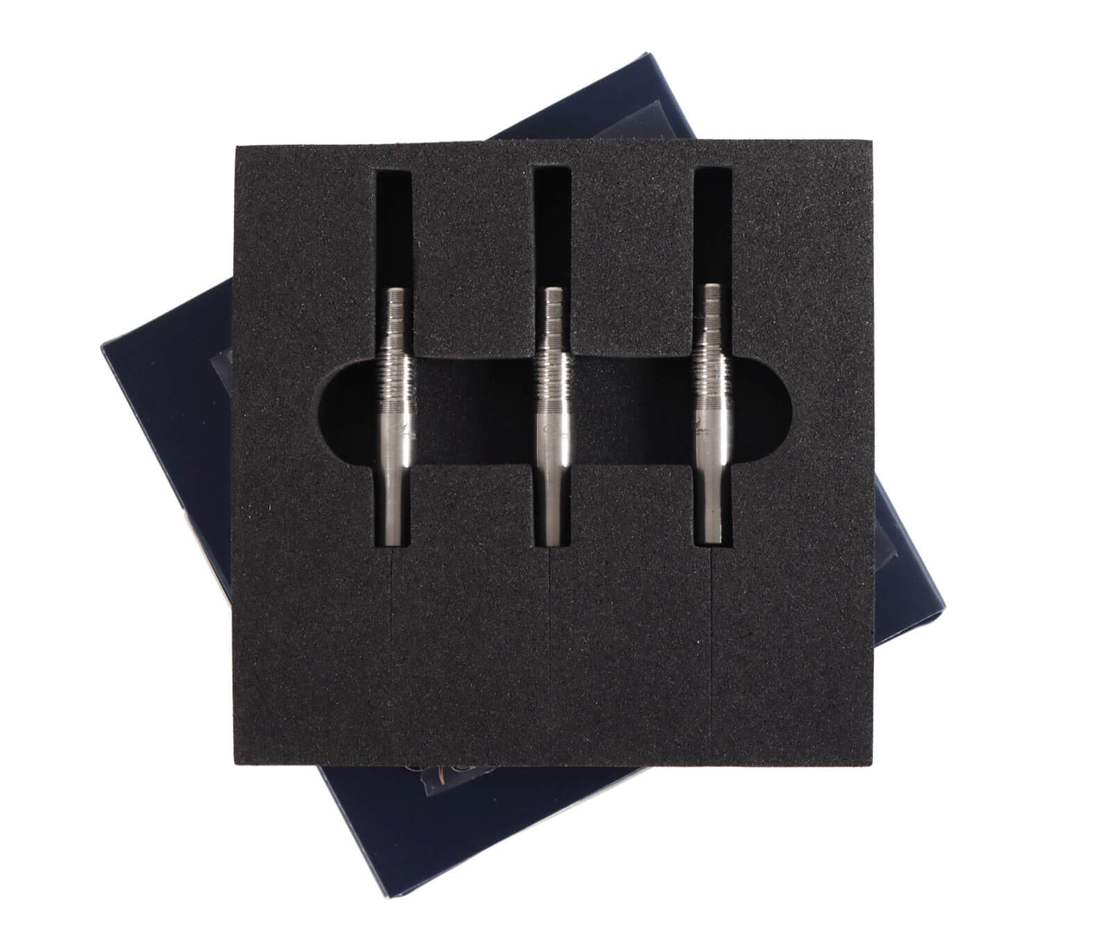 Dardos de gran calidad fabricados por Cosmo Darts en Japón diseñados por Shintaro Inoue V2 Marca: Cosmo Darts Modelo: Shintaro Inoue V2 Material: 90% Tungsteno Tipo de punta: Plástico rosca 2ba 4mm Rosca de la caña: 2ba 4mm Longitud del barril: 41mm Diámetro del barril: 6.9mm Peso: 17.5gr aprox El juego se compone por 3 cuerpos Cosmo Darts Shintaro Inoue V2 , no incluye cañas ni plumas.
