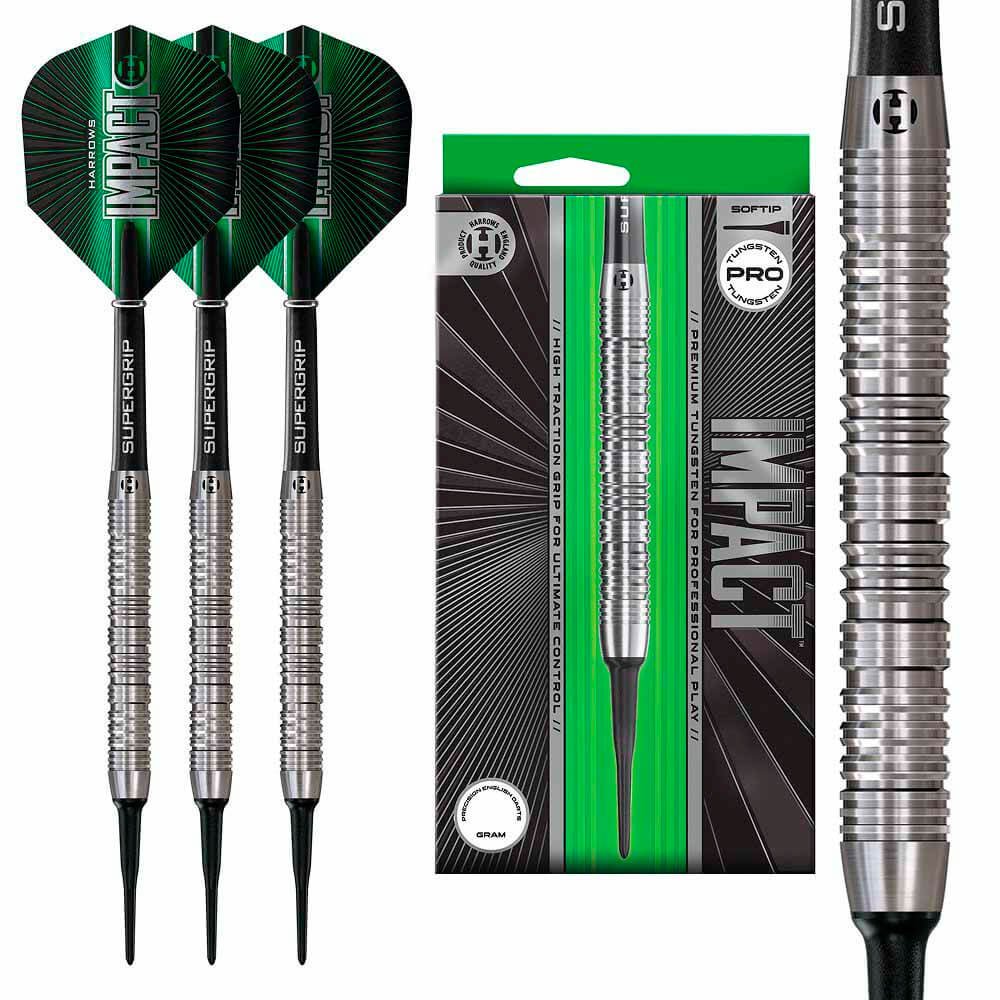 Dardos de tungsteno de primera calidad diseñados para un control de agarre máximo y confianza total. La gama Impact está fabricada con tungsteno de alta calidad, torneado con precisión para un equilibrio y una consistencia perfectos. Con una empuñadura completa que combina cortes de anillo y de tiburón, estos dardos ofrecen un control excepcional, permitiendo a los jugadores lanzar con total confianza, especialmente en los momentos decisivos del partido. El acabado de tungsteno natural ofrece una apariencia limpia y profesional, mientras que el agarre de precisión garantiza un rendimiento confiable, lanzamiento tras lanzamiento. Marca: Harrows Darts. Modelo: Impact. Peso: 20 gramos con precisión del 0.05g. Punta: Plástico. Rosca punta: 2BA. Material: 70% de tungsteno. Medida del cuerpo: 6.6mm x 50mm. El dardos se compone por 1 set de 3 cuerpos Harrows Darts Impact , 1 set de 3 cañas Harrows , 1 set de 3 plumas Harrows y 1 set de 3 puntas 2ba 4mm