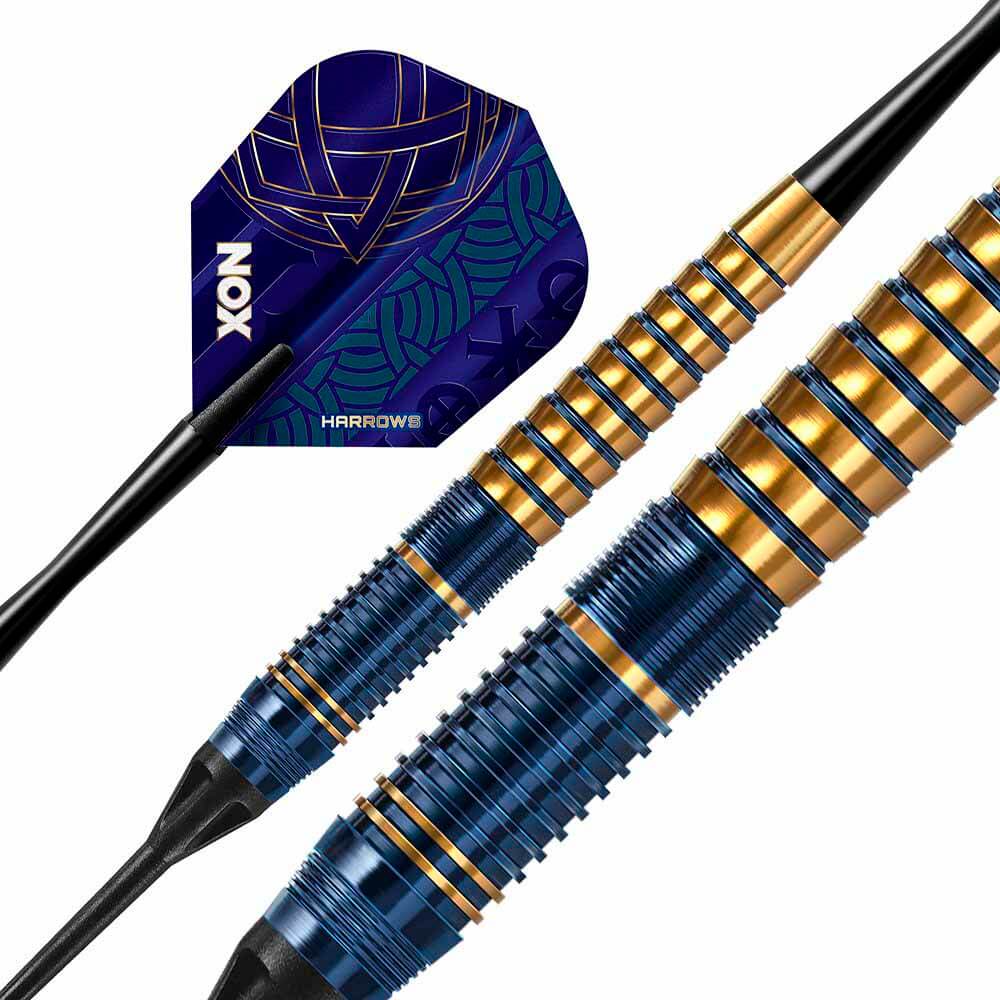 Dardos de latón bellamente diseñados que ofrecen agarre, control y un estilo excelente. El Nox cuenta con un cuerpo con diseño paralelo con agarre de precisión a lo largo de toda su longitud, lo que brinda a los jugadores un control y confianza excepcionales en el oche. Diseñados para el rendimiento y elaborados para el estilo, estos dardos presentan un impresionante acabado en dos tonos azul real y dorado que se destaca tanto como su rendimiento. Marca: Harrows Darts. Modelo: Nox Version: Brass Peso: 20 gramos Punta: Plástico. Rosca punta: 2BA. Material: Brass Medida del cuerpo: 8.8mm x 54mm. El dardos se compone por 1 set de 3 cuerpos Harrows Darts Nox , 1 set de 3 cañas Harrows , 1 set de 3 plumas Harrows y 1 set de 3 puntas 2ba 4mm y una caja de plástico rígida negra para transportarlos