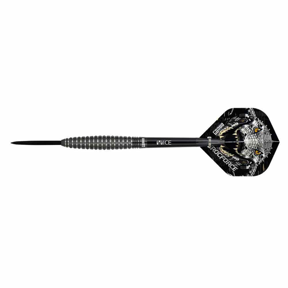 Dardos fabricados por One 80 modelo Crocforce CF4 , dardos de gran calidad con un excelente agarre todo ello acabado en color negro con detalles en los anillos de agarre en color plata. Marca: One 80 Modelo: Crocforce Version: CF4 Largo Barril: max 48.5mm Diámetro Barril: max 7.9mm Peso del cuerpo: 25 gramos Material Barril: 90% Tungsteno El juego de dardos Crocforce CF4 se compone por 1 set de 3 cuerpos, 1 set de 3 cañas y 1 set de 3 plumas