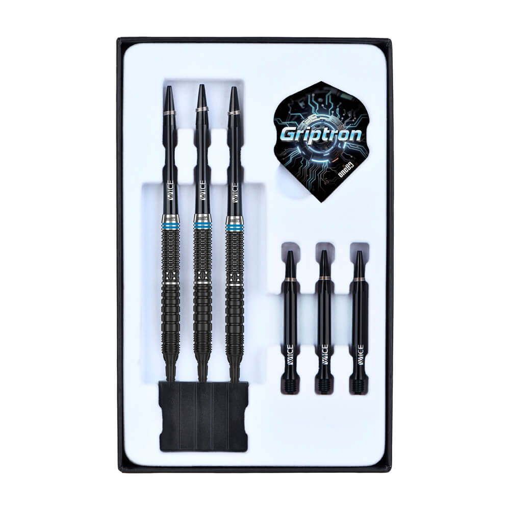Los dardos ONE80 Griptron GT4 90% son la opción ideal para jugadores ambiciosos que valoran la calidad y la precisión. Con un 90% de tungsteno, estos dardos ofrecen máxima durabilidad y un diseño elegante y profesional. Sus anillos y fresados lacados en negro le confieren un aspecto elegante, convirtiéndolos en la mejor opción entre los dardos rectos de punta de plástico. Marca: One 80 Modelo: Griptron Versión: GT4 Largo Barril: 47.5mm Diámetro Barril: 6.7mm Peso del cuerpo: 18 gramos Material Barril: 90% Tungsteno El juego de dardos Griptron GT4 se compone por 1 set de 3 cuerpos, 1 set de 3 cañas y 1 set de 3 plumas