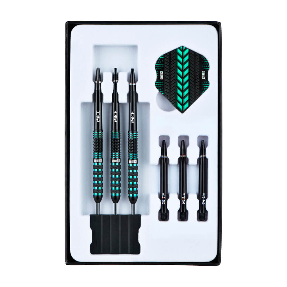 Los dardos Jesus Noguera Perea combinan un moderno tratamiento de superficie con una refinada disposición de la zona de agarre, lo que da como resultado un cuerpo preciso y cómodo. Su diseño estilizado con zonas de agarre cuidadosamente ubicadas ofrece control sin morder excesivamente. El patrón de agarre permite una colocación flexible de los dedos, lo que hace que este cañón sea adecuado para varios estilos de agarre y al mismo tiempo garantiza una liberación estable y predecible. Esta es una excelente opción para los jugadores que buscan un dardo técnicamente refinado que funcione de manera consistente incluso en sesiones largas. Marca: One 80 Modelo: Jesus Noguera Perea Versión: Steeltip Largo Barril: 50.4mm Diámetro Barril: 6.7mm Peso del cuerpo: 24 gramos Material Barril: 90% Tungsteno El juego de dardos Jesus Noguera Perea se compone por 1 set de 3 cuerpos, 1 set de 3 cañas y 1 set de 3 plumas