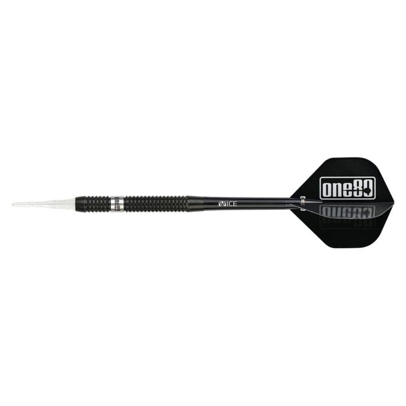 Juego de dardos fabricado por One80 y diseñado por el jugador Jonny Chong, conocido como The Gold Scorpion en su modelo 2. Dardos con apariencia sencilla pero con una buenísima precisión, gracias a sus cortes tipo shark, aleta de tiburón, consigue un agarre sensacional a lo largo de todo el dardo. Todo acabado en un elegante color negro con una zona lisa en la parte delantera grabada a láser con el logo One80 y el escorpión como sello de identidad del jugador Jonny Chong. Marca: One 80 Modelo: The Gold Scorpion II Diseño: Jonny Chong Material: 90% tungsteno Peso Barril: 21gr Peso Total: 22.5gr aprox Longitud Barril: 51.0mm Diámetro Máximo Barril: 6.7mm Tipo de punta: Plástico rosca 2ba 4mm Rosca de caña: 2ba 4mm El juego de dardos The Gold Scorpion II Jonny Chong se compone por 1 set de 3 cuerpos, 2 sets de 3 cañas Vice, 1 set de 3 plumas One80, 3 puntas de plástico Lippoint premium negro 2ba y 1 protector de puntas