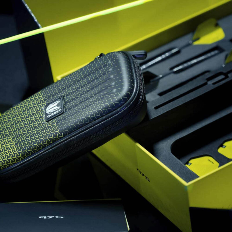 Gama de dardos de la marca Target Darts modelo 975, dardos con el mayor porcentaje de tungsteno en dardos con 97.5% mas un trabajo del cuerpo excelente, barriles muy bien fabricados con varios tipos de agarre exclusivos del modelo 975. Dardo de gama alta con acabados perfectos que solo Target nos puede ofrecer en su 975 11. Marca: Target Modelo: 975 11 Peso: 18 gramos Tipo punta: Soft Tip 2ba 4mm Material barril: 97.5% tungsteno Largo barril: 48.0mm Diámetro barril: 6.2mm El productos se compone por un juego completo de dardos del modelo 975 11 97.5% 18g, el dardos incluye: 3 x 975 Barrels 3 x Carbon Ti Shafts 9 x 975 Flights 1 x 975 Takoma 1 x Swiss Key 1 x 975 Pin Badge 6 x Black Swiss Points 9 x Flight Protectors 1 x 975 Booklet