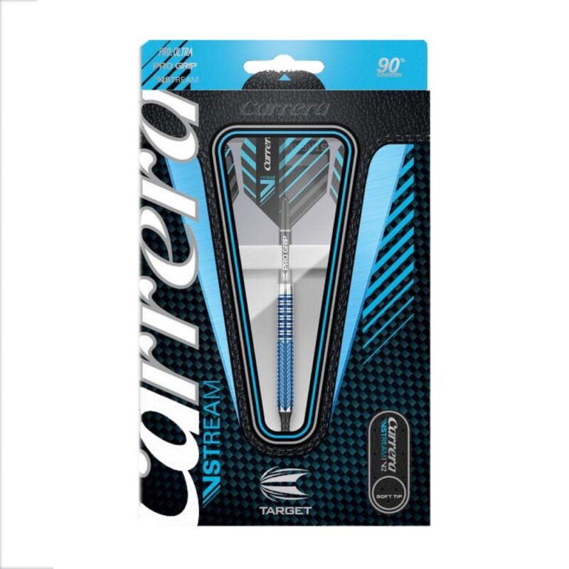 Juego de dardos fabricado por la marca Target Darts, dardos de la gama Vstream, calidad excepcional, diseño increíble y acabado de autentico lujo, este modelo es el Vstream V2 dispone de dos zonas de agarre diferente ambas acabadas con nitrito de titanio azul que le da un realce y belleza que rara vez vemos en un juego de dardos. Dardos Target Carrera Vstream V2 20g Peso del dardo 20 gramos Dimensiones: Longitud: 48.0mm Anchura : 6.60mm 90% Tungsteno El producto se compone por 1 Juegos de Dardos Target Carrera Vstream V2 20g (3 Barriles), 1 Juego de Cañas Target Pro Grip Azul (3 Cañas),1 Juego de Plumas Carrera (3 Plumas) y 1 juego de puntas pixel 2ba 4mm (3 puntas)
