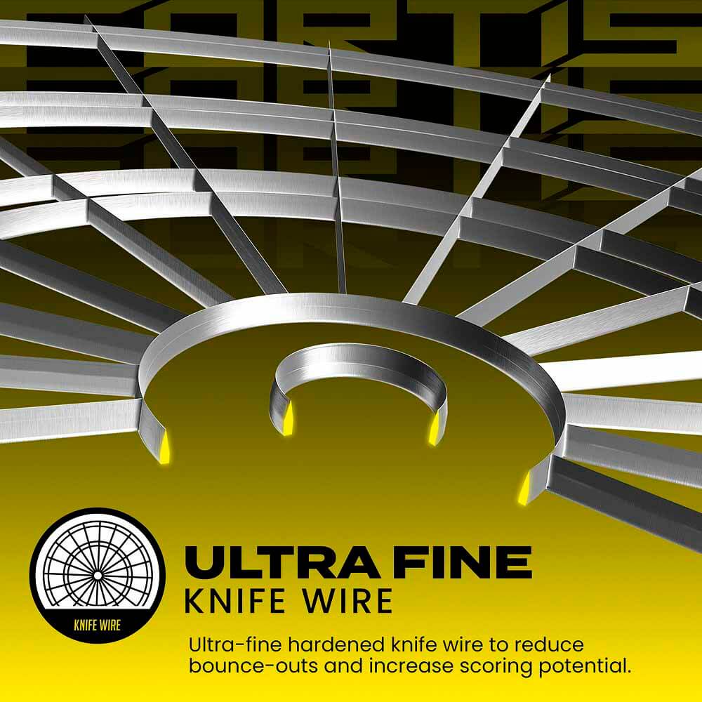 Esta diana ha sido fabricado por la marca Inglesa de dardos Harrows bajo en nombre de Fortis, diana diseñada para jugadores de dardos que solo se conforman con la máxima calidad y son muy exigentes a la hora de elegir una buena diana. Esta diana profesional está fabricada con sisal de Madagascar de alta calidad y fabricada con acabados excelentes, la diana Fortis de Harrows garantiza una durabilidad excelente y un rendimiento óptimo capaz de sorprender al jugador de dardos mas exigente. Gracias a la capacidad auto-regenerativa del sisal de Madagascar , los agujeros se cierran rápidamente después de cada lanzamiento, manteniendo la diana en condiciones óptimas durante mucho tiempo incluso con uso intensivo. El cableado ultra fino tipo knife wire minimiza los rebotes y maximiza la superficie de puntuación, contribuyendo a un juego más profesional y permitiendo entrenar al nivel mas alto. Ya sea que entrenes a cualquier nivel de juego o compitas, la Harrows Fortis garantiza precisión, fiabilidad y una experiencia profesional en el juego de dardos excelente. Marca: Harrows Modelo: Fortis Productos: Diana Profesional Material: Sisal El producto se compone por una diana de la marca Harrows modelo Fortis no llega dardos es solo la diana