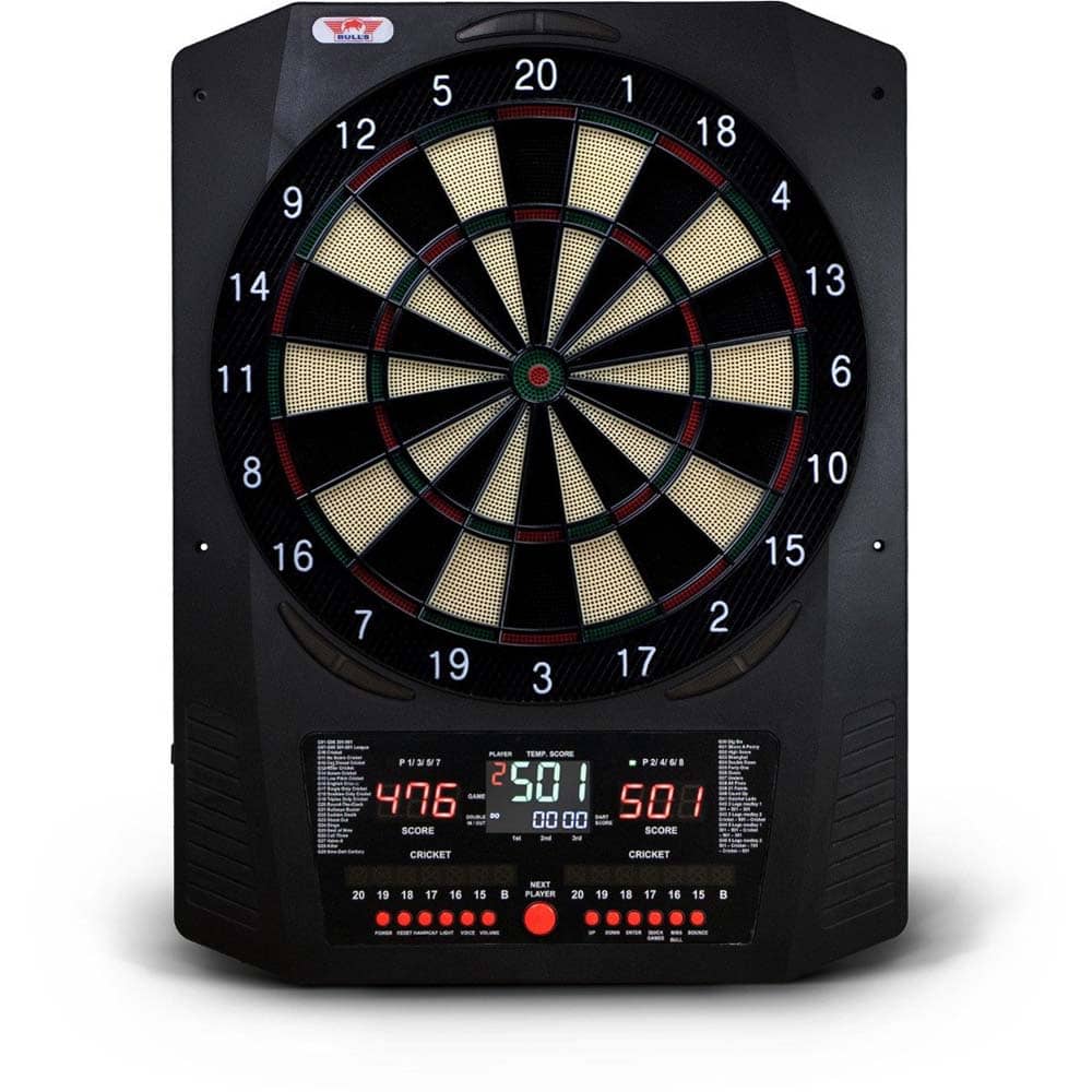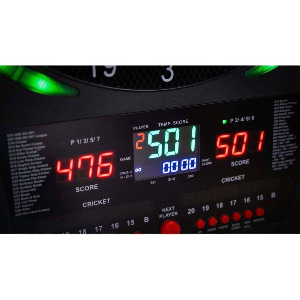 Lleva tu juego de dardos al siguiente nivel con la diana electrónica de punta blanda Bull s Universum Pro L. Diseñada tanto para aficionados como para jugadores competitivos, esta diana premium combina precisión, rendimiento y un diseño moderno para crear la mejor experiencia de punta blanda. Disponible en negro/blanco y rojo/azul , es un complemento elegante y con estilo para cualquier sala de juegos. Características principales: Diana electrónica con aro profesional (2 puntos de ancho en dobles y triples) diseñada exclusivamente para dardos de punta blanda, lo que garantiza una experiencia de juego segura y precisa, ideal tanto para principiantes como para jugadores experimentados. Luces LED decorativas: agrega un toque de estilo a tu configuración con tres luces decorativas alrededor del tablero, elevando el atractivo visual y creando una atmósfera vibrante durante el juego. Pantallas LED duales: con dos pantallas LED claras y brillantes, este tablero de dardos acomoda fácilmente hasta 8 jugadores , manteniendo la puntuación visible y accesible para todos, ya sea que esté organizando un juego informal o un torneo. 45 juegos preprogramados: con 45 juegos incorporados y un total de 474 variaciones , el Universum Pro L ofrece infinitas opciones para mantener la competencia emocionante y fresca, desde el clásico 501 hasta modos personalizados únicos. Dimensiones profesionales: el tablero de dardos está diseñado para coincidir con el tamaño y las proporciones de los tableros de dardos tradicionales con punta de acero, lo que proporciona una sensación realista y profesional para su juego. Dos elegantes opciones de colores: elija entre el elegante diseño blanco y negro o el vibrante rojo y azul para un toque personalizado que se adapte a su estilo y espacio. Juego de dardos completo: el Universum Pro L viene completamente equipado con 2 juegos de dardos de punta blanda , 30 puntas de punta blanda de repuesto y un adaptador de corriente , lo que garantiza que estará listo para jugar desde el primer momento. Marca: Bulls NL Modelo: Universum Pro L Diseño: Blanco y Negro Tipo de aro: Profesional (2 puntos de ancho en dobles y triples) Diseñada para dardos de punta de plástico Con 45 juegos incorporados y un total de 474 variaciones Pueden jugar hasta 8 jugadores Incluye transformador y 6 dardos con 30 puntas de repuesto