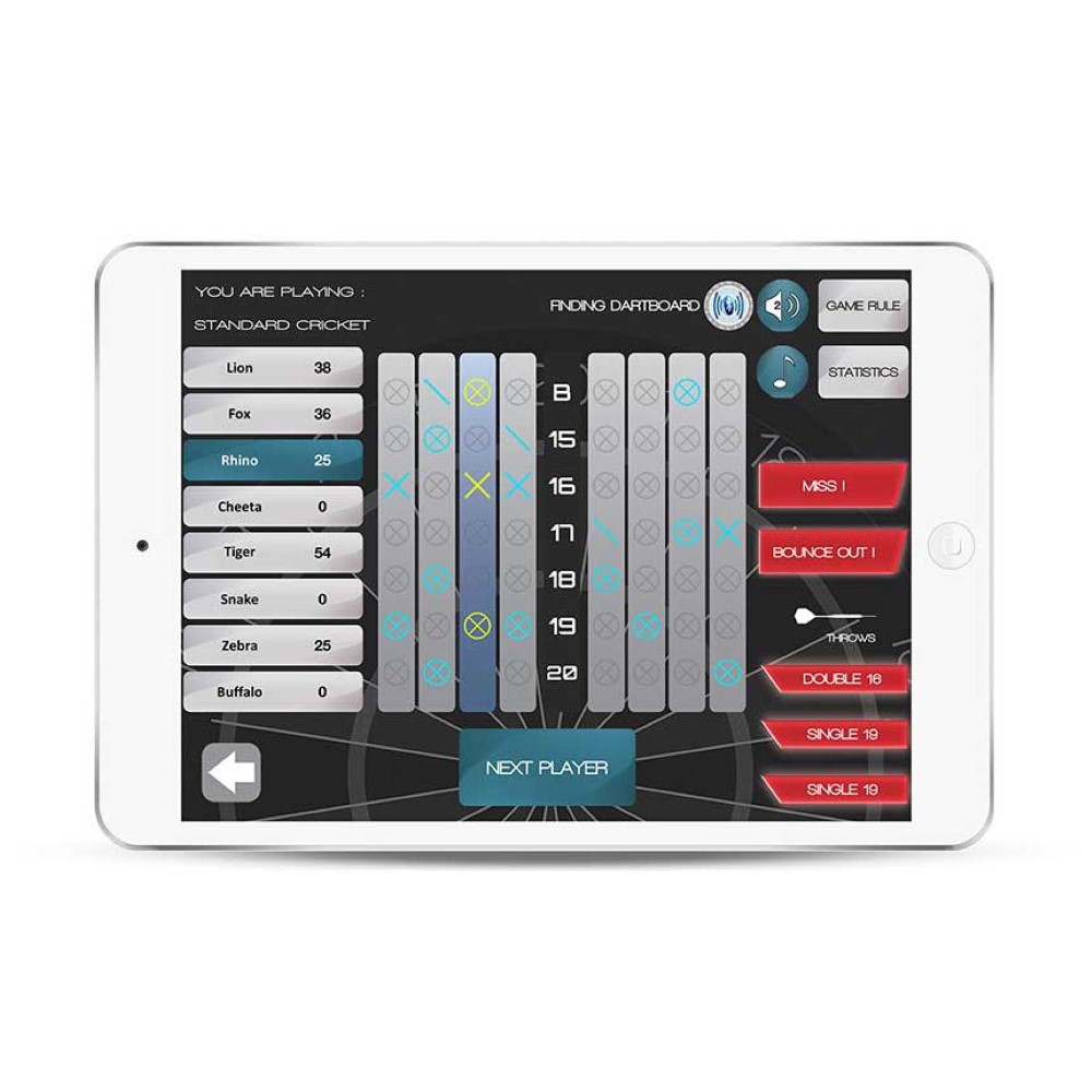 Diana de aro inglés (2 Puntos en Triple y Doble) Diana con app para mostrar el juego en tu dispositivo tablet o teléfono con reclamos y animaciones muy divertidas. Dispone de los juegos mas populares como la familia de los 301 y los cricket, posibilidad de jugar hasta 4 jugadores, la app para jugar se llama Smartness Darts Board, esta disponible en App Store y Google play. Funciona con 2 pilas AA no incluidas. Incluye 6 dardos, 20 puntas, 1 cable usb para conectarla y manual de instrucciones. Diana con soporte para 6 dardos en el frontal. Con este tipo de dianas cambia el concepto de jugar a los dardos ya que al vincular tu teléfono a un smart tv podrás ver en tu televisión también la partida como las dianas profesionales de bar.