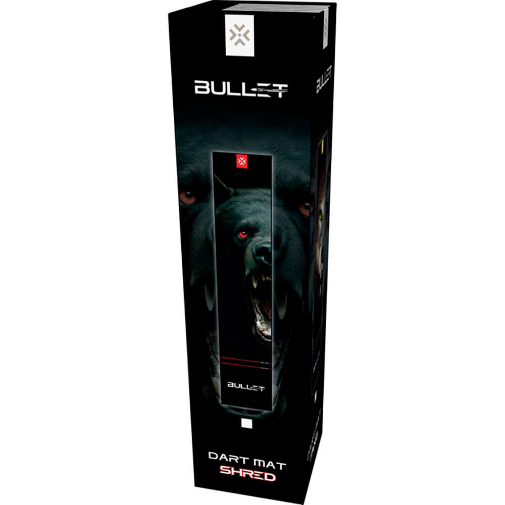 Tapete de dardos Bullet Shred, de 300 x 60 cm, en negro con costuras rojas y el logotipo de Bullet. Este robusto tapete protege el suelo de la caída de dardos, a la vez que proporciona una base segura para el lanzamiento. Dos líneas oche impresas en el tapete corresponden a las distancias oficiales de lanzamiento de 237 cm y 244 cm. Su material duradero y antideslizante es ideal para uso doméstico o en clubes. El tapete se presenta en una atractiva caja de color. Marca: Bullet Modelo: Shred Longitud: 300cm Ancho: 60cm Grosor: 3mm Diseño: rompecabezas de 4 piezas El producto se compone por 1 DartMat Shred de la marca Bullet. Protector de suelo.