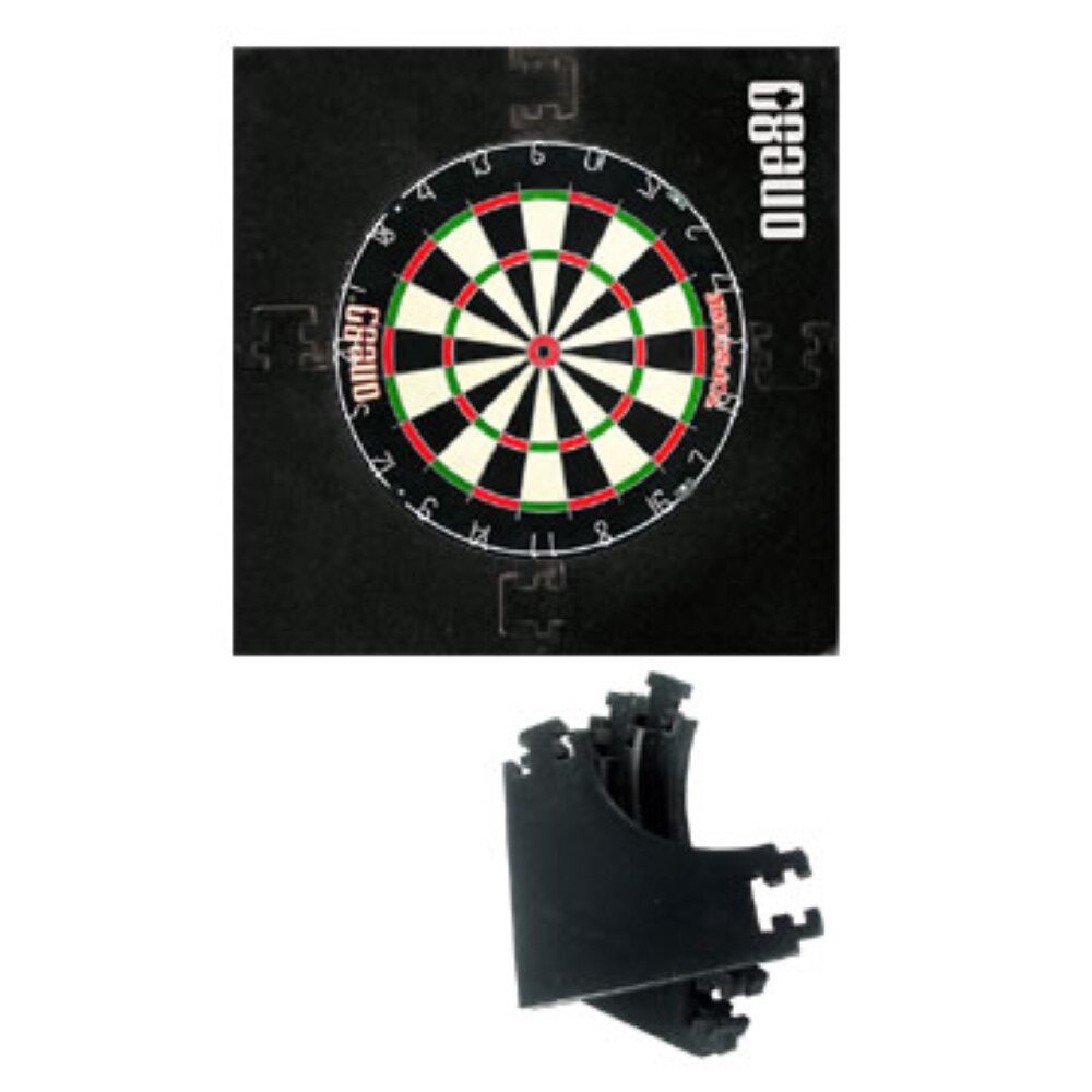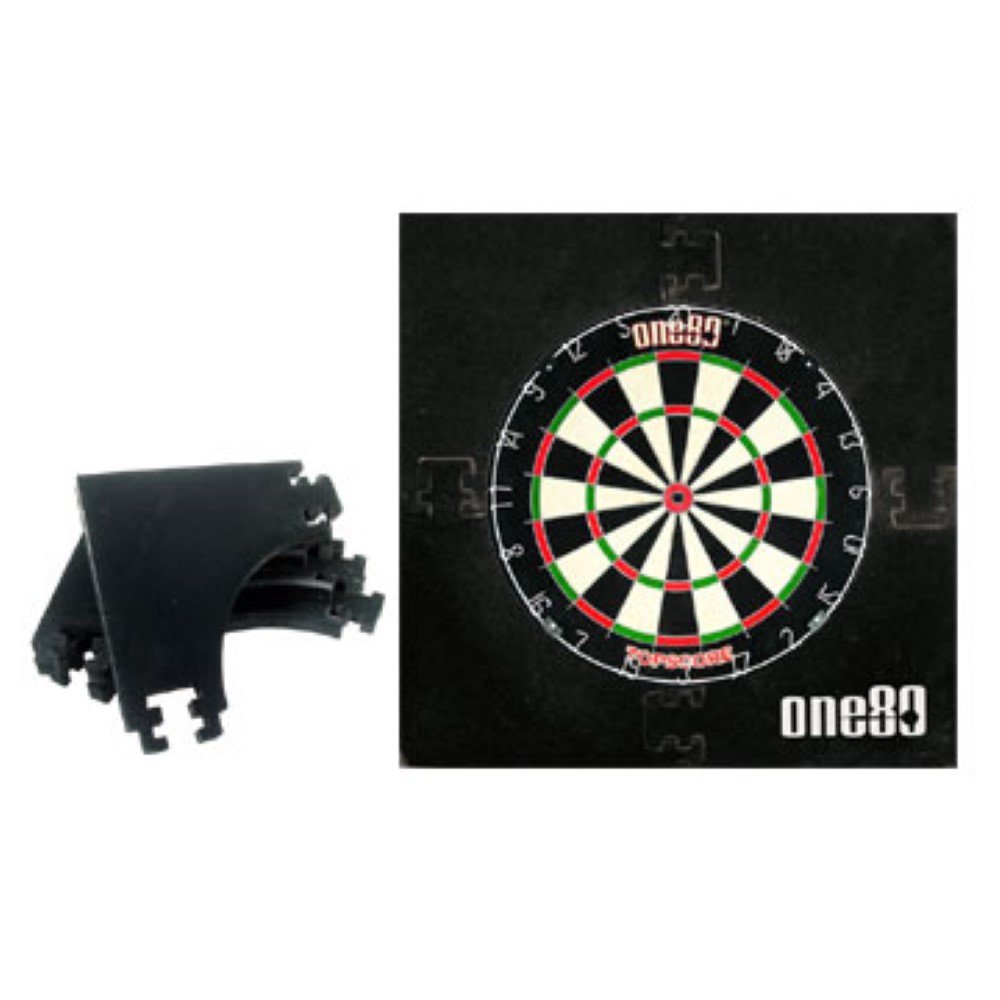 Surround tipo puzzle fabricado por One 80. Dimensiones exterior 705mm, interior 450mm, grosor 25mm Fabricado por One 80 Color Negro Knock-down Dartboard Surround