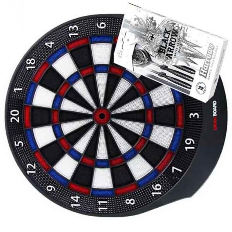Diana Electrónica Aro Americano (5 Puntos en Triple y Doble) La diana mas económica con juego on line, dispone de la misma app que la diana Gran Board 2 con las mismas funciones pero es este modelo el mueble y las calidades usada son menor calidad y no dispone de sensor de dardos fuera.Modelo de triples y dobles azules. Diana con Bluetooth 4.0 , es la próxima generación de diana inalámbrica conectarlo a su app en tu smartphone,la tableta o television de ultima generacion. Diana con funciones de juego en línea, diana con gran cantidad de jugadores en todo el mundo Fabricado con un diseño muy actual y con un cuerpo fabricado en ABS muy resistente Incluye 6 dardos, 25 puntas y 1 juegos dardos completo Harrows Medida de la diana 55 cm, ancho 50 cm, 3 cm de espesor, Tamaño de la caja 56 cm x 52 cm x 5 cm Peso 1,8 kg “Únete a la comunidad de Gran Board España, más de 600 jugadores españoles están en esta comunidad. Hacen torneos de martes a domingo además de ligas individuales y ligas de parejas.Visita su página web: https://www.granboardespaña.com o encuéntrales en facebook: https://www.facebook.com/GBEspana/”