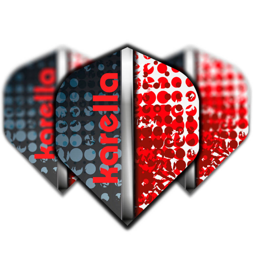 La serie Karella Flights XT fue desarrollada y diseñada en colaboración con el equipo de Karella. Estas plumas de alta calidad, atractivas y de nivel profesional presentan una variedad de diseños en los colores característicos de Karella. El productos se compone por 1 set de 3 plumas Karella Flights XT