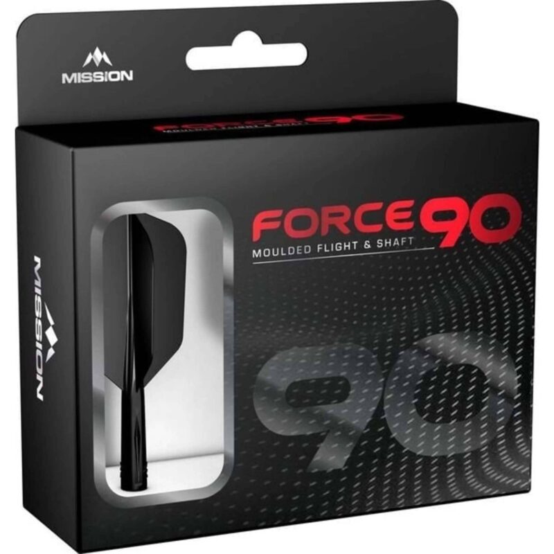 Pluma fabricada por la marca de dardos Mission modelo Force 90 Slim color Negro, pluma fabricada en una pieza caña + pluma para ofrecer al jugador de dardos una experiencia diferencia de jugar a los dardos de gran calidad. Modelo: Force 90 Geometría: Slim Color: Negro Largo 73.80mm caña 25.50mm Intermedia 67.80 caña 25.50mm Corto 61.80mm caña 25.50mm El producto se compone por 1 set de 3 plumas para dardos Force 90 Mission