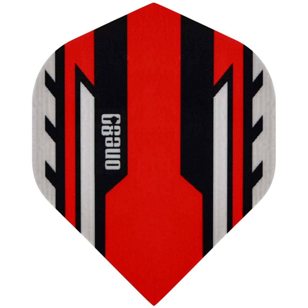 Plumas de dardos One80 Arrow – 100 micras – N° 2 Estándar. Las plumas One80 de 100 micras están fabricadas con el material más popular de 100 micras, lo que les proporciona durabilidad y un rendimiento altamente consistente. El proceso de producción de las plumas One80 utiliza la última tecnología de impresión digital para darles un acabado visual impactante. Cada paquete contiene 3 plumas. Marca: One80 Modelo: Arrow Geometría: Nº 2 Standard Grosor: 100 micras Color: Rojo y negro El producto se compone por 1 set de 3 plumas One80 Standard