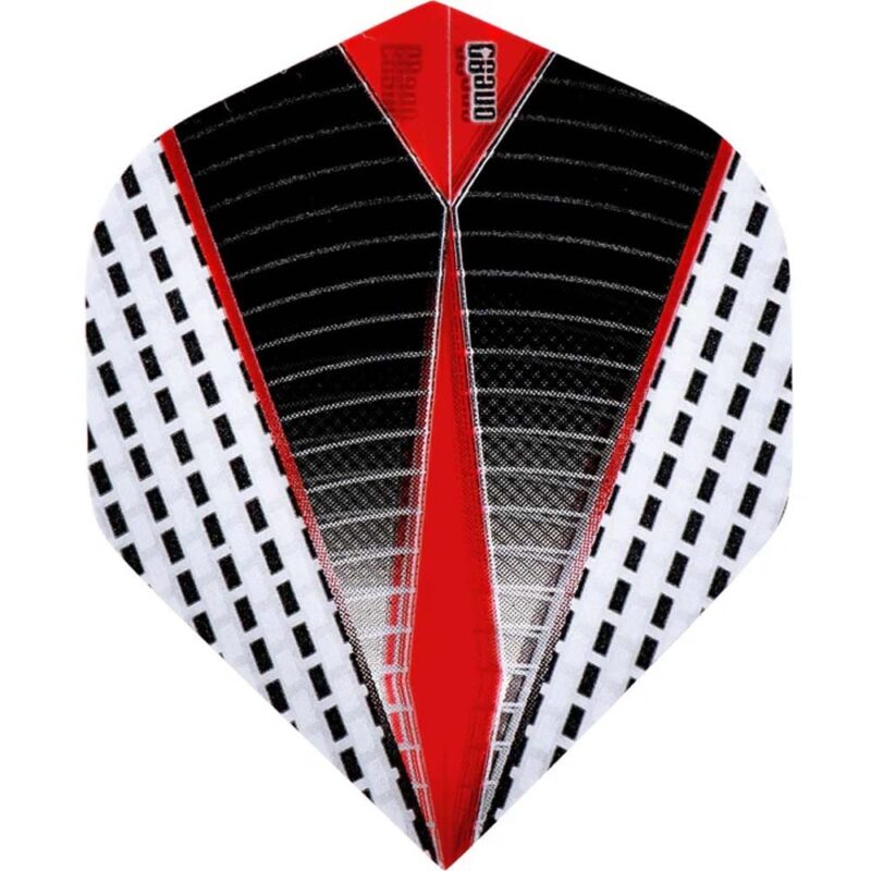 Plumas de dardos One80 Daze – 100 micras – N° 2 Estándar. Las plumas One80 de 100 micras están fabricadas con el material más popular de 100 micras, lo que les proporciona durabilidad y un rendimiento altamente consistente. El proceso de producción de las plumas One80 utiliza la última tecnología de impresión digital para darles un acabado visual impactante. Cada paquete contiene 3 plumas. Marca: One80 Modelo: Daze Geometría: Nº 2 Standard Grosor: 100 micras Color: Rojo, negro y plata El producto se compone por 1 set de 3 plumas One80 Standard