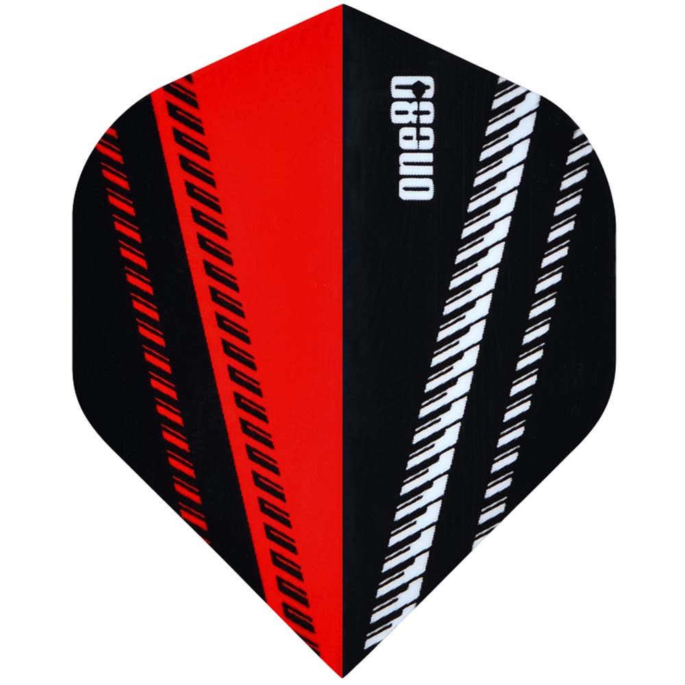 Plumas de dardos One80 V-Flow – 100 micras – N° 2 Estándar. Las plumas One80 de 100 micras están fabricadas con el material más popular de 100 micras, lo que les proporciona durabilidad y un rendimiento altamente consistente. El proceso de producción de las plumas One80 utiliza la última tecnología de impresión digital para darles un acabado visual impactante. Cada paquete contiene 3 plumas. Marca: One80 Modelo: V-Flow Geometría: Nº 2 Standard Grosor: 100 micras Color: Rojo y negro El producto se compone por 1 set de 3 plumas One80 Standard