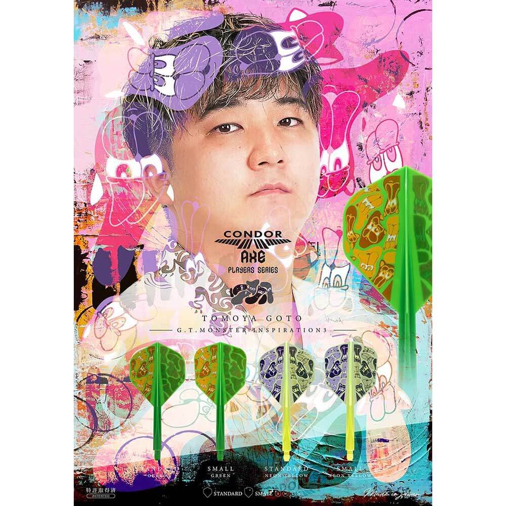 Plumas Condor Standard modelo Axe diseñado G.T.Monster 3 Juego de 3 plumas integradas. Diseño de caña para reducir la resistencia al aire Fabricadas en un polímero de alta resistencia y gran flexibilidad. Formato: Shape Modelo: G.T.Monster 3 Color: Amarilla Longitud: S 21.5mm Talla: S El producto se compone por 1 set de 3 plumas de la marca de dardos Condor G.T.Monster 3