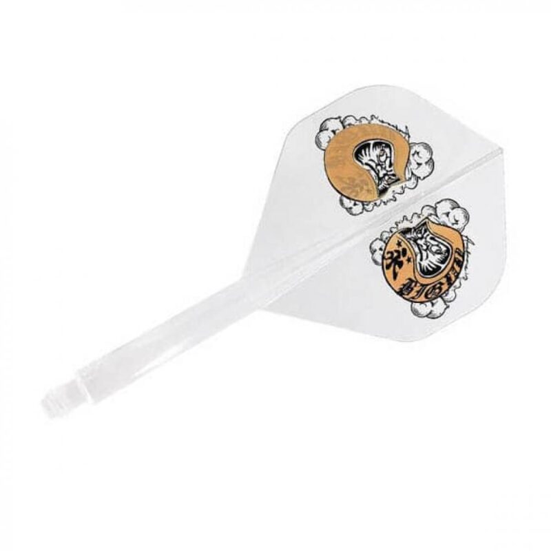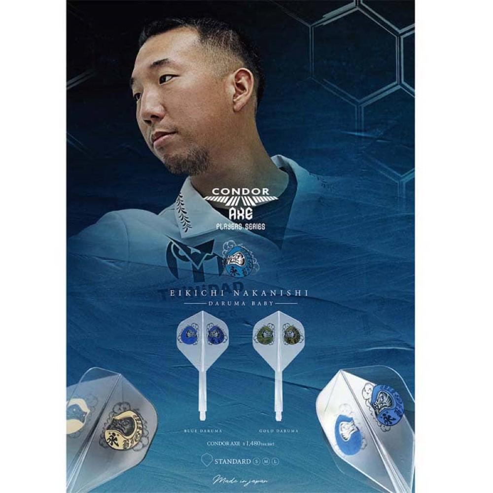 Plumas fabricadas por la prestigiosa marca de dardos Condor formato Standard calidad Axe, pluma de ultima generación mas duradera que las plumas de dardos Condor Clásicas. Pluma diseñada por la jugador Condor Trinidad Eikichi Nakanishi , plumas con un diseño muy original y un vuelo al lanzar el dardos perfecto. Juego de 3 plumas integradas Diseño de caña para reducir la resistencia al aire Fabricadas en un polímero de alta resistencia y gran flexibilidad. Formato: Standard Color: Transparente Dorado Jugador: Eikichi Nakanishi Diseño: Daruma Baby Longitud: 21.5m Talla: S El producto se compone por 1 set de 3 plumas de la marca Condor modelo Axe