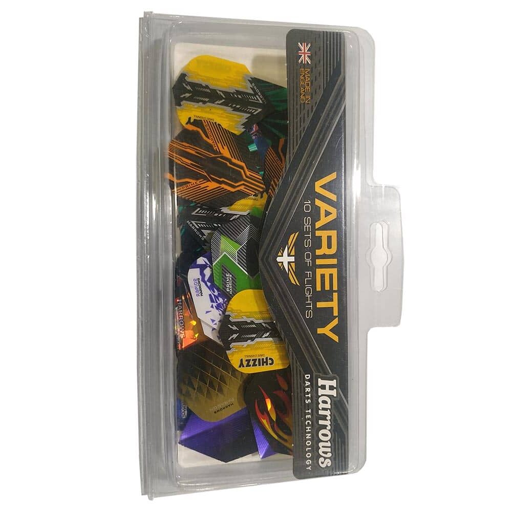 Lote de 10 Juegos de plumas Variadas en Formato Standard a un precio insuperable!! VARIETY PACK FLIGHTS de Harrows! Contiene 10 Juegos de 3 Plumas Standart de Gran Calidad.