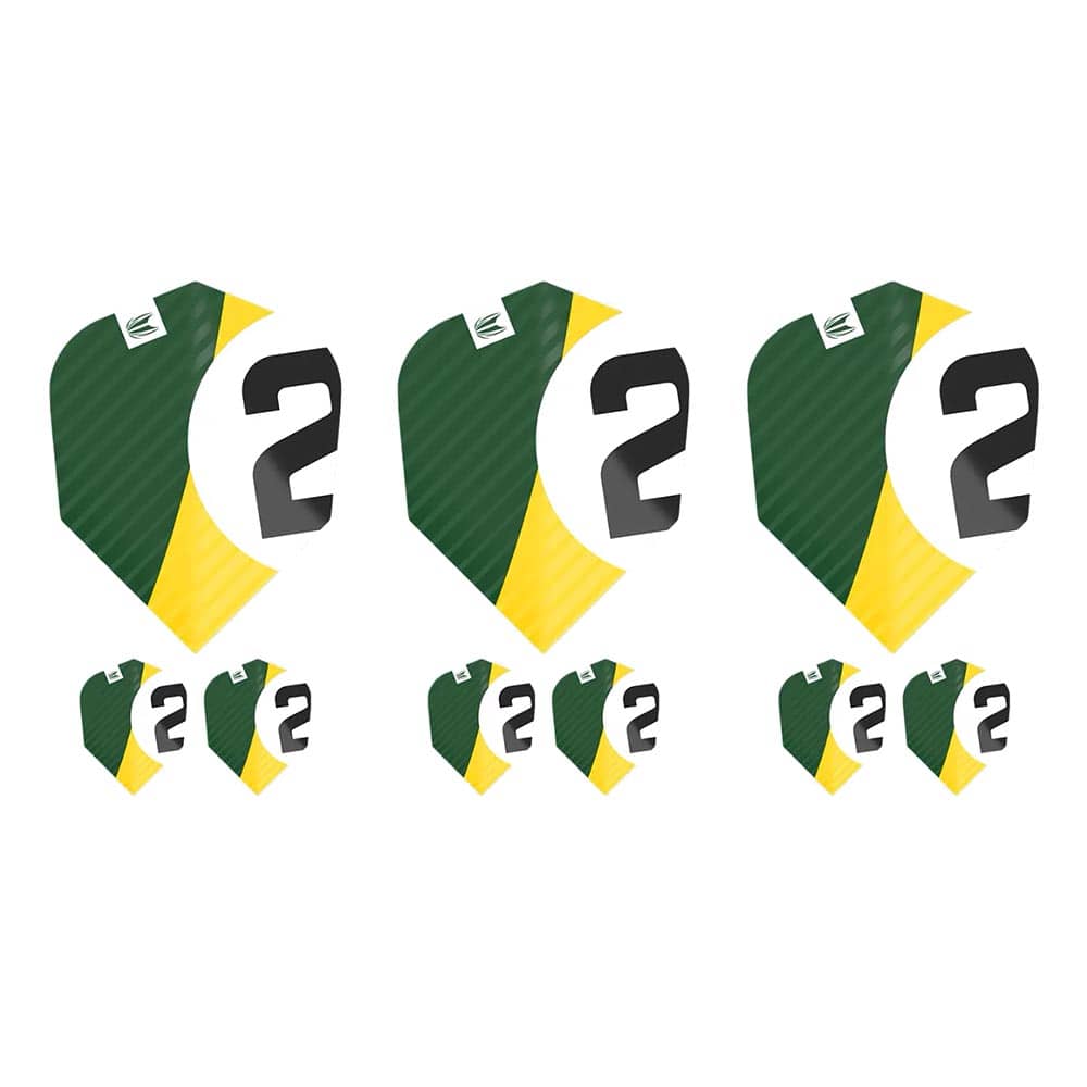 Plumas para dardos fabricadas por Target Darts. La gama Chicane Flight, diseñada en una gama exclusiva de colores y diseños con la marca Chicane. Con impresión Spot UV para mejorar el agarre de la pluma a la caña, disponible en los tamaños No.2 Standard, No.6 Shape y Ten-X Shape Mini. Marca: Target Modelo: Chicane Pro.Ultra Green Geometría: Ten-X Shape Mini Grosor Pluma: 100 Micrones Color: Verde y amarillo Contenido: 9 plumas El producto se compone por 3 sets de 3 plumas, total 9 plumas Target Chicane Pro.Ultra