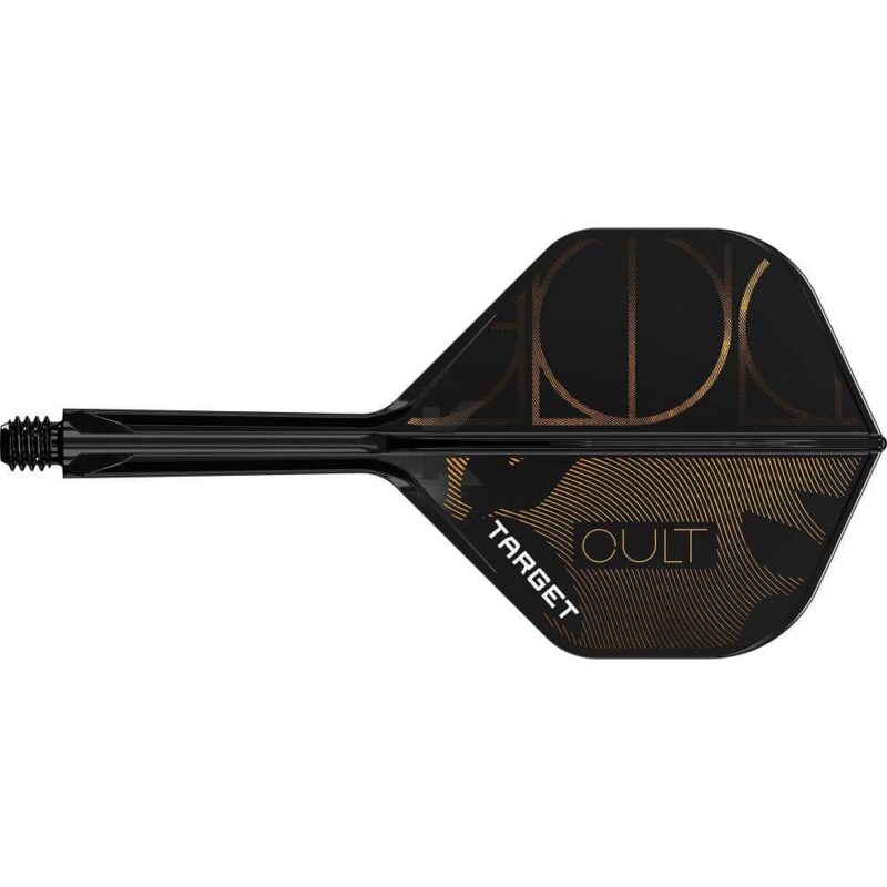 Sistema integrado de vuelo + eje fabricado por Target Darts y con diseño de dardos Target Cult. Utilizando el sistema de molde de precisión, las plumas de dardos K-FLex de Target son muy duraderas, ligeras y continúan manteniéndolas en un ángulo de 90 grados durante toda su vida útil, por lo que se garantiza un juego perfecto. Para reducir la posibilidad de que rebote durante un juego crítico, K-Flex utiliza el sistema de giro patentado de Target que mueve el dardo si lo golpea otro. Las plumas y cañas integradas K-Flex edición Cult se han diseñado para complementar a la perfección la serie de dardos Cult. Con un elegante acabado negro con detalles dorados, el diseño presenta el audaz y elegante logotipo de Cult y líneas abstractas inspiradas en el característico estilo del barril. Marca: Target Modelo: K-Flex Diseño: Cult Talla: Corta – Short Medida Caña: 19mm Medida Total: 67.30mm Geometría: No.2 Standard Color: Negro con logo Cult dorado El producto se compone por 1 sets de 3 plumas Target K-Flex Cult