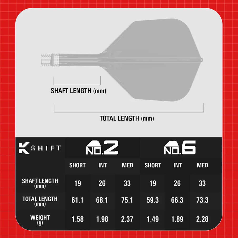 K-Shift: La próxima evolución del control integrado. El sistema Target Darts K-Shift se basa en el rendimiento comprobado de K-Flex para ofrecer la próxima generación de tecnología integrada de plumas y cañas. Diseñado para reducir activamente las desviaciones, K-Shift protege los grupos compactos y mantiene la consistencia en la puntuación cuando cada dardo cuenta. Desplazamiento al impactar. Estabilidad en vuelo. El núcleo de K-Shift reside en una conexión de ingeniería de precisión que permite que el sistema se flexione y se desplace al ser golpeado por un dardo entrante, en lugar de desviarse bruscamente. Este movimiento controlado ayuda a reducir los rebotes y a mejorar la retención en el tablero, a la vez que proporciona el vuelo estable y predecible que los jugadores esperan de un sistema integrado. Fabricación de precisión. Personalización total. Con una base de aluminio ligero con ranuras de agarre radiales y una rosca 2BA segura con junta tórica de goma, el K-Shift se mantiene firmemente en su lugar durante todo el juego, permitiendo un movimiento inteligente al impacto. Disponible en longitudes corta, intermedia y larga, y con formas de vuelo n°2 standard y n° 6 shape, el K-Shift ofrece la durabilidad, adaptabilidad y rendimiento que exige el juego moderno. Marca: Target Modelo: K-Shift Medida Caña: 19mm Medida Total: 67.30mm Geometría: No.2 Standard Color: Blanco El producto se compone por 1 set de 3 plumas Target K-Shift