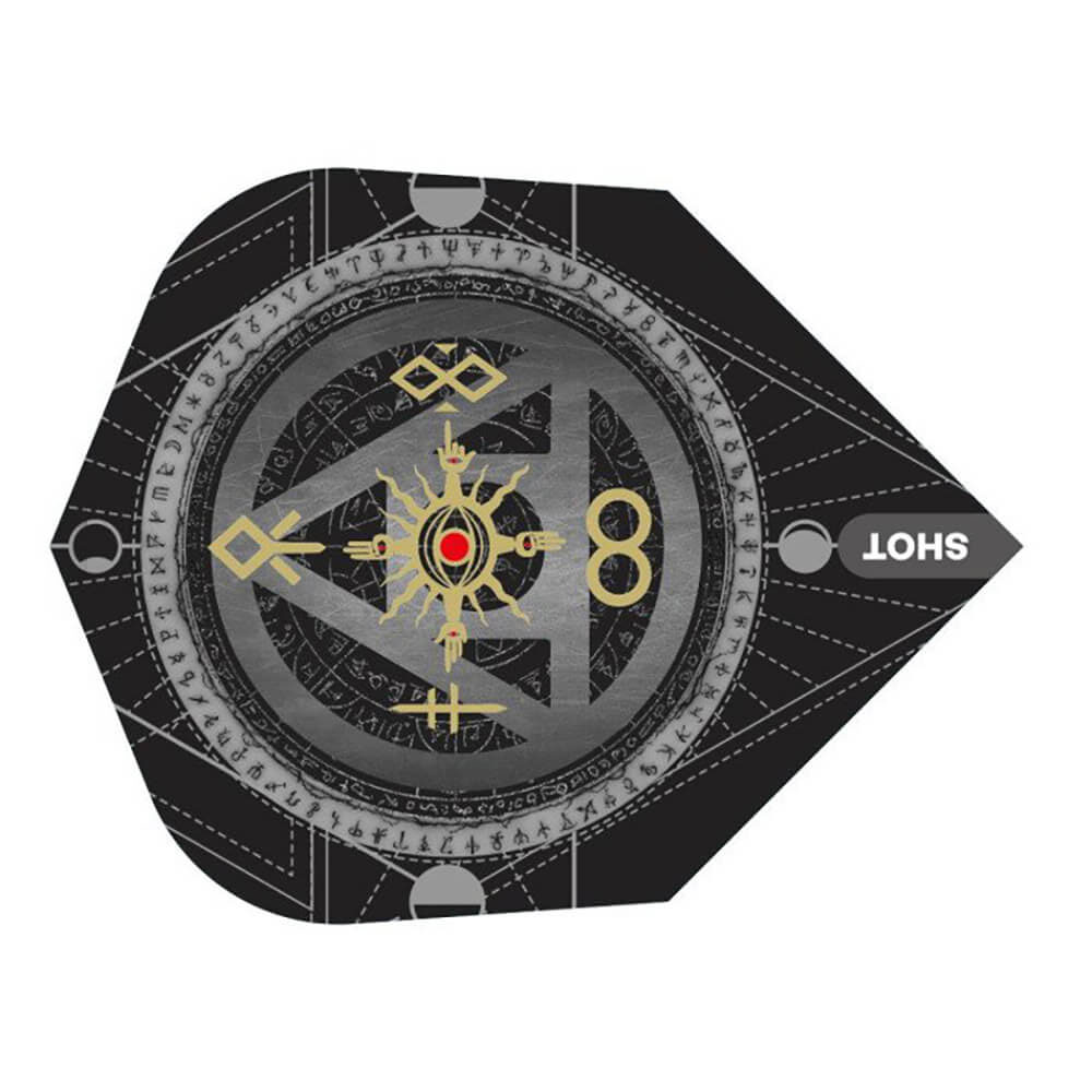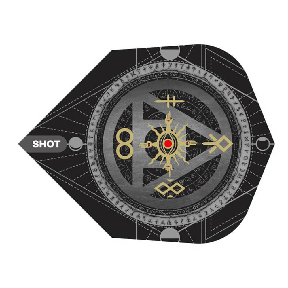 Pluma de gran calidad fabricada por la marca de dardos Shot darts, plumas diseño Alchemy Marca: Shot Formato: Shape No6 Modelo: Alchemy Material: 100 micras El producto se compone por 1 set de 3 plumas Shot Darts modelo Alchemy
