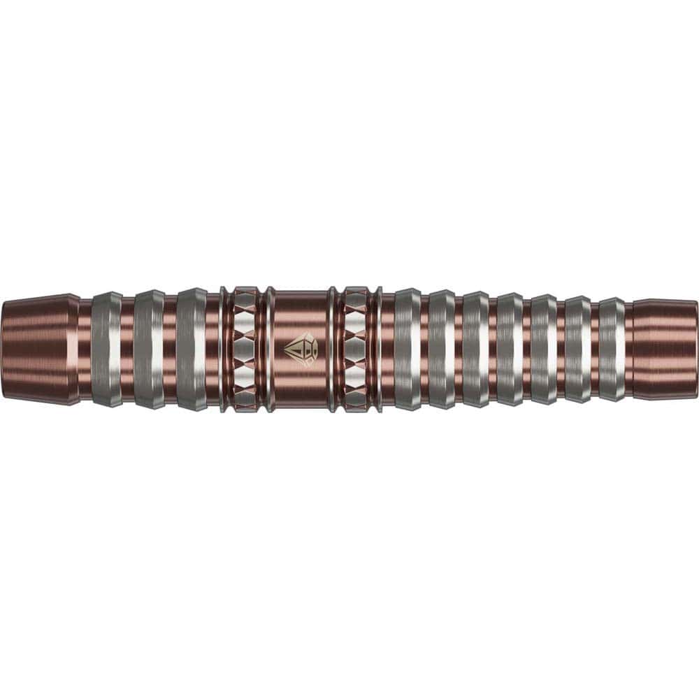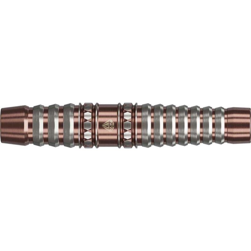 El nuevo modelo de Iwao Kosuzu, el DIAMOND GEN-3.5. Una evolución definitiva en forma y tacto. De recto a torpedo. El GEN3.5 cambia con audacia del barril recto tradicional a una forma de torpedo. Logra un equilibrio refinado y propulsión hacia adelante. También mejora la estabilidad de lanzamiento. El corte de doble línea crea una sensación de lujo . El centro presenta un corte de anillo de diamante de dos filas, sello distintivo de la serie Diamond G3. Su elegante acabado irradia una sensación premium. Rendimiento de agarre: Una fusión de control y comodidad. El corte de anillo moderadamente convexo proporciona un agarre claro y cómodo. El diseño evita bordes excesivos, lo que favorece un lanzamiento consistente y una alta reproducibilidad. El brillo del oro rosa : El color se ha actualizado del rojo y negro anterior al oro rosa. La elegante coloración crea una apariencia digna del nombre DIAMOND. Marca: Target Japan Modelo: Prime Series Diamond G3.5 Iwao Kosuzu Peso barril: 19 gramos Material: Tungsteno 90% Longitud barril: 41.0 mm Diámetro barril: 7.50 mm Tipo de punta: Plástico con rosca 2ba 4mm Rosca de la caña: 2ba El juego de dardos se compone por 1 set de 3 cuerpos Prime Series Diamond G3.5 Iwao Kosuzu, 1 set de 3 Plumas con caña integrada Target K-Flex y 1 set de 3 puntas de plástico Target Pixel Tip 2ba.