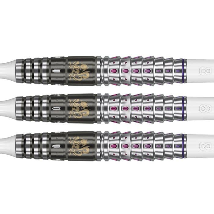 Modelo de jugadora Morita Mayuko MAYO GENERATION-4 Forma clásica y nuevo peso MAYO G4 mantiene la forma icónica El impulso hacia adelante mejorado hace que el impacto en la tabla sea más satisfactorio. Mejora para satisfacer las necesidades de los jugadores avanzados. Corte de tiburón para un agarre antideslizante y seguro La parte trasera del cañón tiene un corte de tiburón dividido en cuatro segmentos, lo que proporciona una fuerte fricción y un agarre claro. El diseño evita que los dedos se resbalen a la vez que permite una transmisión de fuerza precisa, lo que lo hace ideal para jugadores que desean un agarre firme. La decoración con patrón de puntos mejora el atractivo visual El centro del cañón está decorado con delicados puntos, presentando un diseño dinámico. La profundidad y la singularidad realzan el diseño general. La combinación de apariencia y funcionalidad proporciona un alto rendimiento durante un largo período de tiempo. Marca: Target Japan Modelo: Morita Mayuko MAYO G4 Peso barril: 18 gramos Material: Tungsteno 90% Longitud barril: 41.00mm Diámetro barril: 7.30mm Tipo de punta: Punta plástico rosca 2ba Rosca de la caña: 2BA El juego de dardos se compone por 1 set de 3 cuerpos Target Japan Mayo G6 Max, 1 set de 3 plumas K-Flex Target Japan y 3 puntas 2ba Target Pixel Tip.